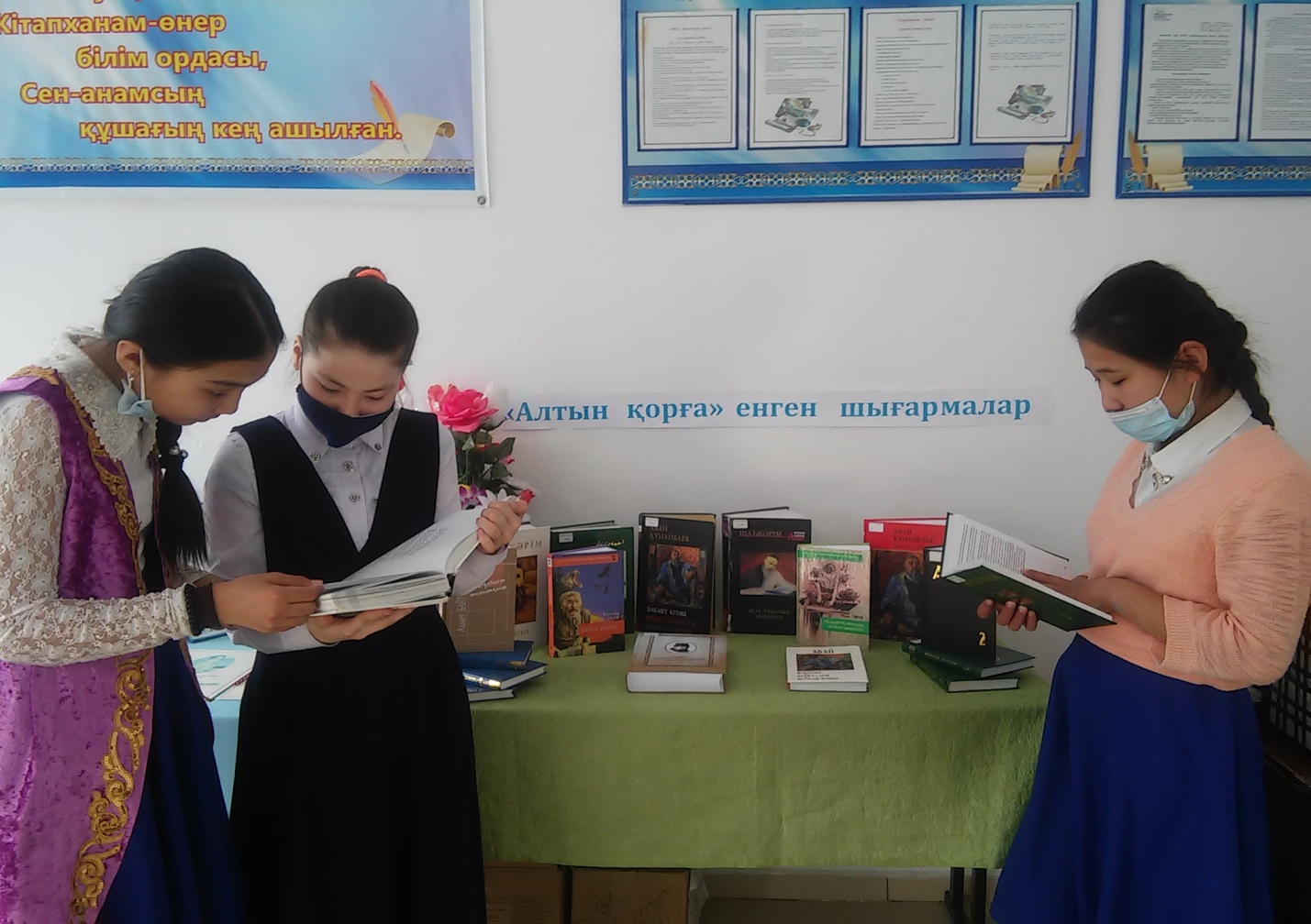 « Оқуға құштар мектеп » жобасы аясында әлемдік « Алтын қорға » енгізілген әлем классиктері шығармаларының коллекцияларынан кітап көрмесі ұйымдастырылды .Көрмеде мектеп оқушылары әлем классиктерінің шығармаларымен танысып , өз білімдерін толықтырды